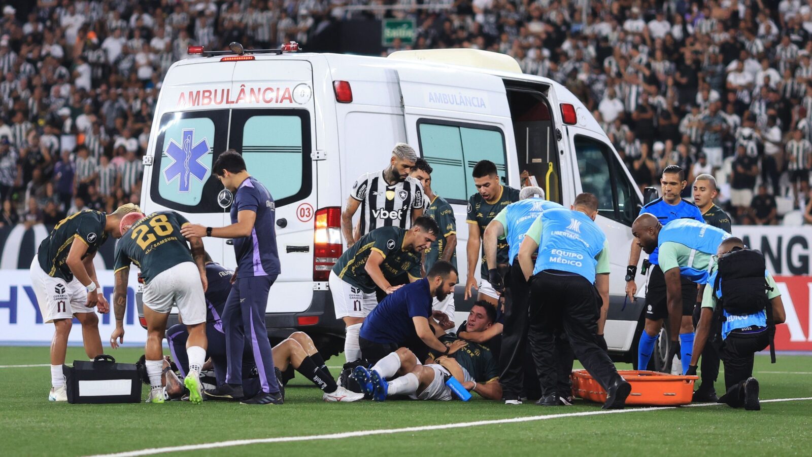 Um lance na partida entre Botafogo e Carabobo pela Libertadores, nesta terça-feira (8), causou preocupação. O zagueiro Neira, do time venezuelano, ficou desacordado após choque de cabeça com Mastriani e precisou sair do campo de ambulância.