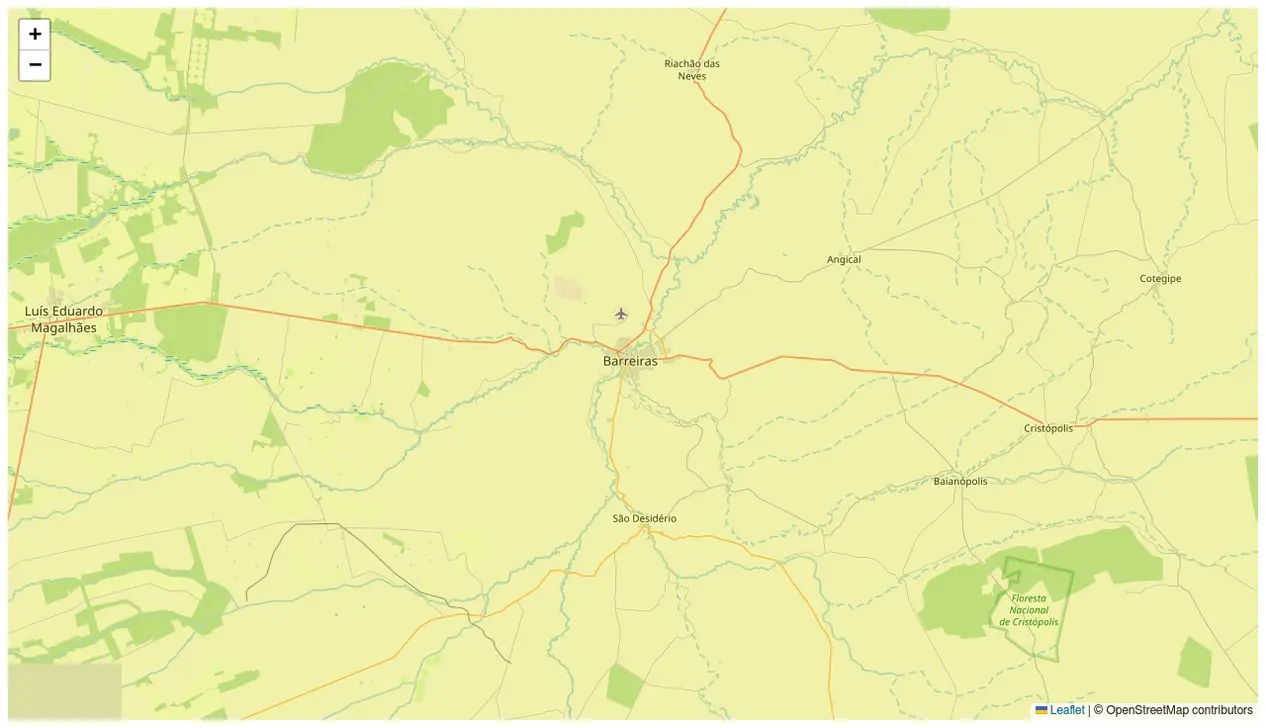 O município de Barreiras, na Bahia, está sob alerta meteorológico amarelo para baixa umidade.