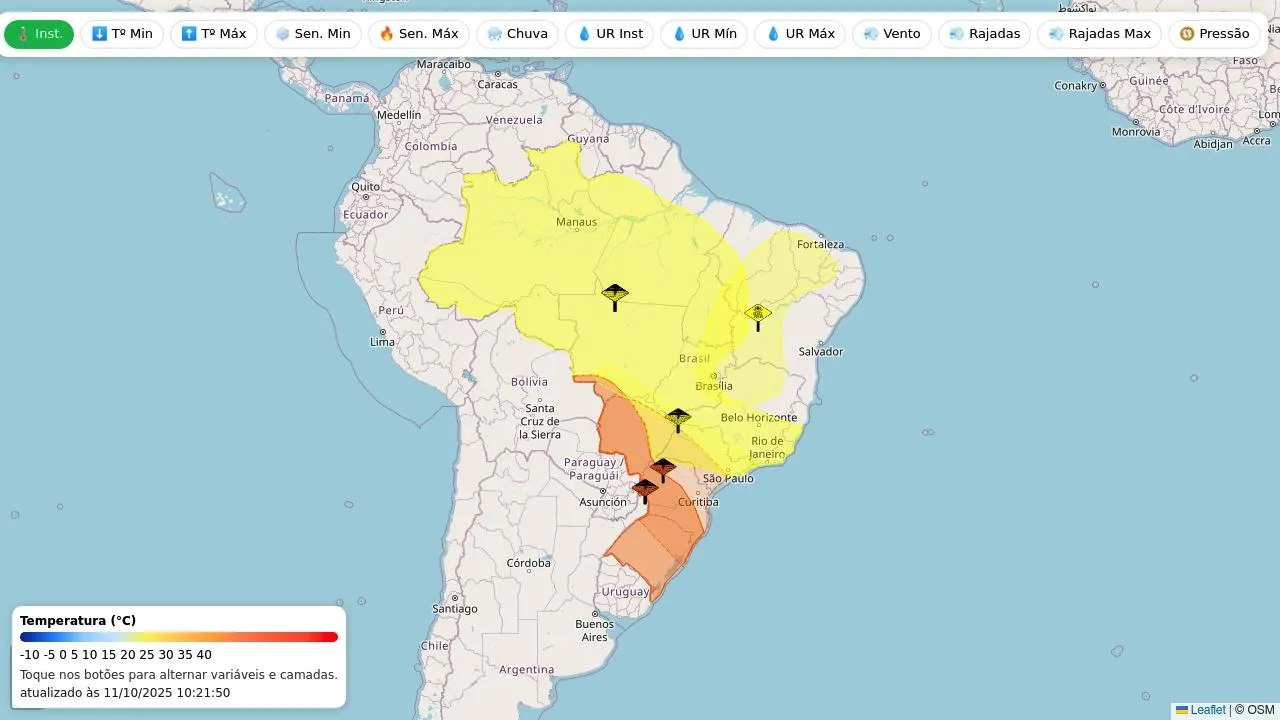 Mapa de estações meteorológicas e alertas Inmet