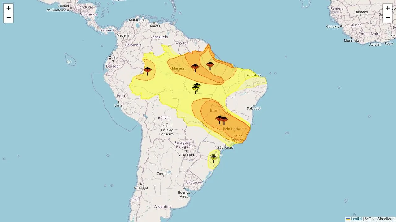 O aviso indica possibilidade de chuva entre 20 e 30 mm/h ou até 50 mm/dia, ventos intensos (40-60 km/h), e queda de granizo. De acordo com o Inmet, essas condições representam baixo risco de corte de energia elétrica, estragos em plantações, queda de galhos de árvores e de alagamentos.