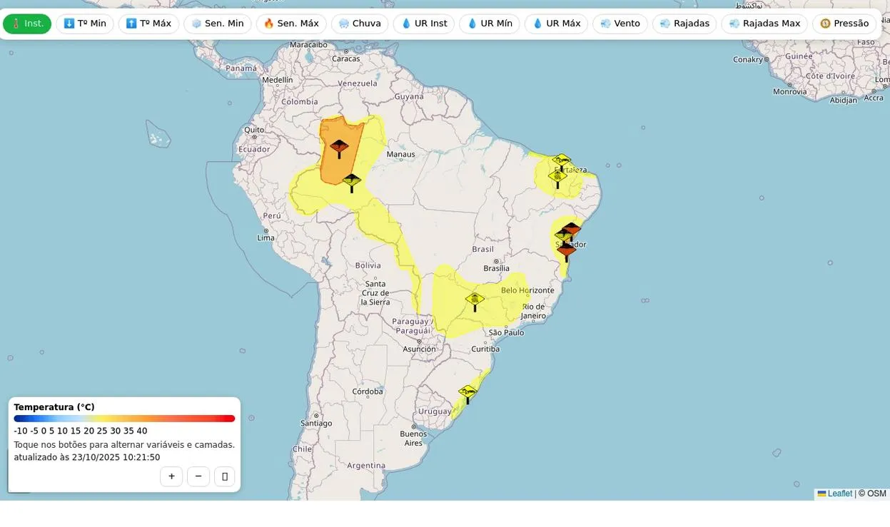 Mapa de estações meteorológicas e alertas Inmet