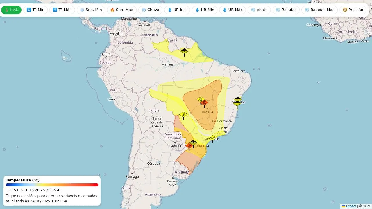 Veja as condições observadas nas estações meteorológicas do Inmet mais próximas e os alertas vigentes para todo o país.