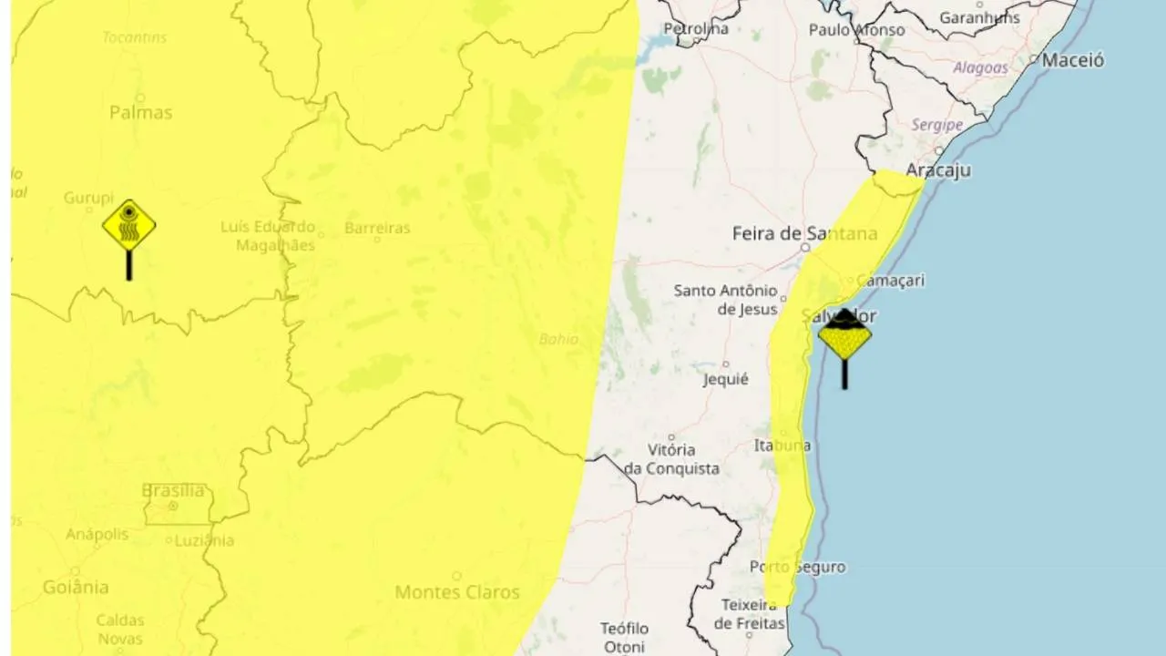 Regiões sob alerta: Nordeste Baiano, Sul Baiano, Centro Norte Baiano, Centro Sul Baiano, Metropolitana de Salvador
