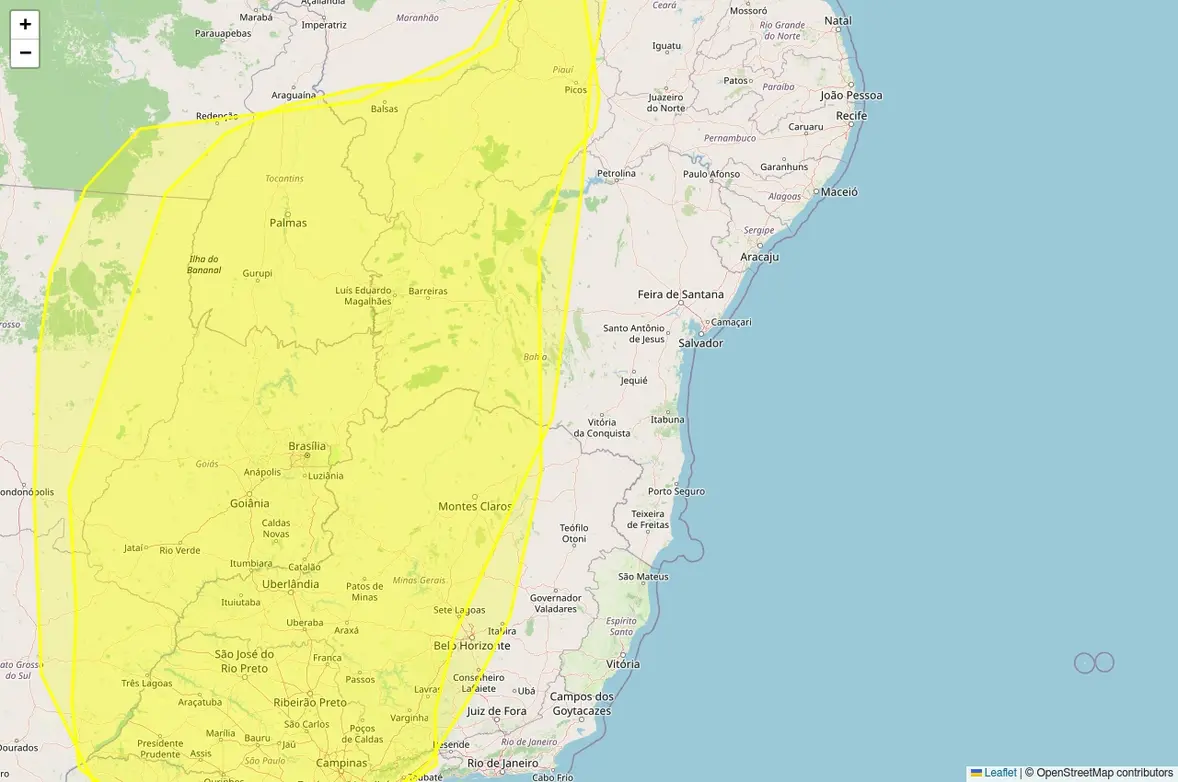 Estados com áreas sob alerta: Bahia, Ceará, Distrito Federal, Goiás, Maranhão, Mato Grosso do Sul, Minas Gerais, Paraná, Pará, Pernambuco, Piauí, Mato Grosso, Rio de Janeiro, São Paulo, Tocantins.