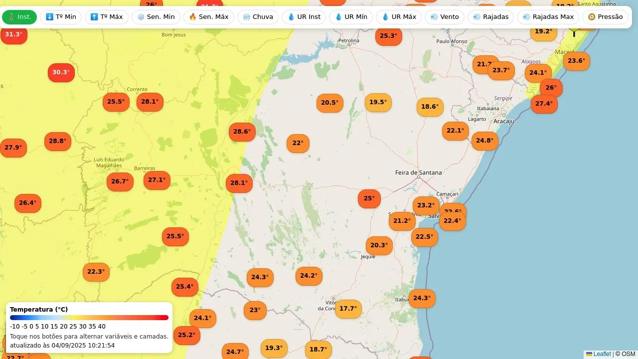 Mapa de estações meteorológicas e alertas Inmet