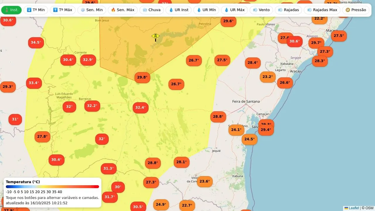 Veja as condições observadas nas estações meteorológicas do Inmet mais próximas e os alertas vigentes para .