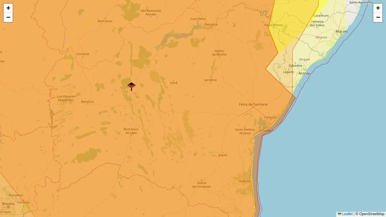 O Instituto Nacional de Meteorologia (Inmet) emitiu cinco alertas meteorológicos nas cores amarelo (2), laranja (2) e vermelho, abrangendo áreas da Bahia.