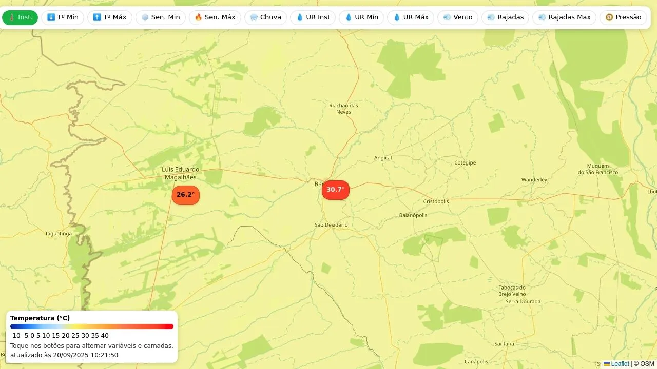 Veja as condições observadas nas estações meteorológicas do Inmet mais próximas e os alertas vigentes para Barreiras.