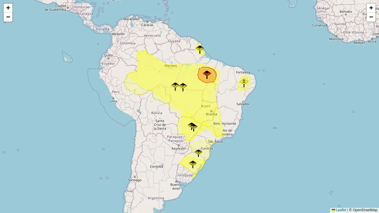 Mapa de estações meteorológicas e alertas Inmet