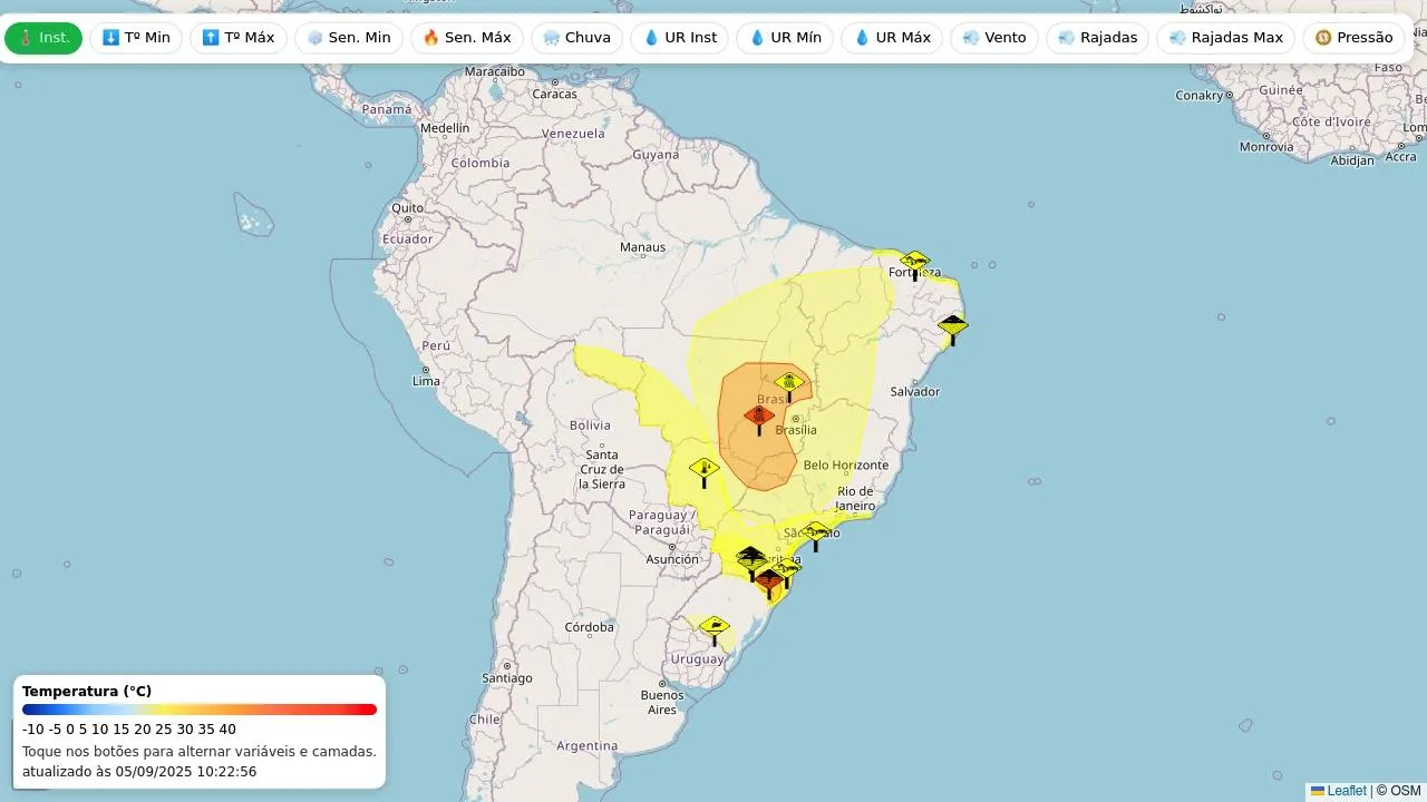 Mapa de estações meteorológicas e alertas Inmet