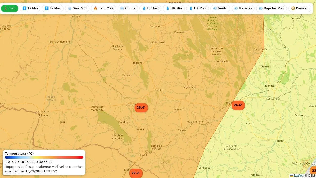 Veja as condições observadas nas estações meteorológicas do Inmet mais próximas e os alertas vigentes para Caetité.
