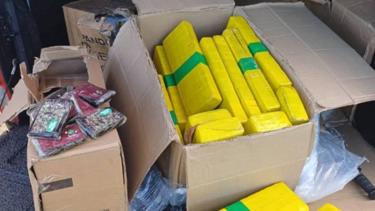 Diante do grande volume de mercadorias transportadas e da complexidade do acesso, foi solicitado apoio do canil da CIPE Sudoeste, cujo cão farejador indicou positivamente a presença de drogas em diversas caixas dentro do compartimento de carga. A verificação manual confirmou que se tratava de substâncias análogas a maconha e haxixe.