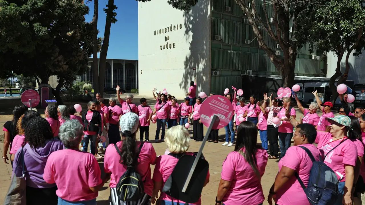 Pacientes oncológicas e representantes da Federação Brasileira de Instituições Filantrópicas de Apoio à Saúde da Mama (Femama) realizaram uma manifestação nesta quarta-feira (9), em frente ao Ministério da Saúde, em Brasília. O protesto visa garantir o acesso a tratamentos para câncer de mama em estágio avançado e metastático, já aprovados pelo Sistema Único de Saúde (SUS), mas ainda não disponibilizados.