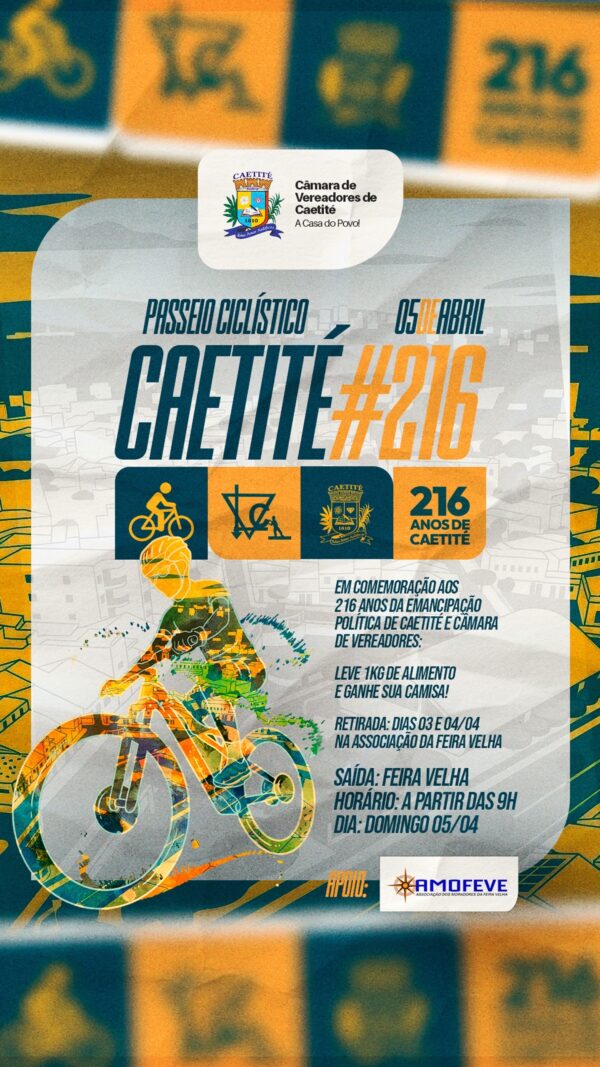 A Câmara Municipal de Caetité realizará, no próximo dia 05 de abril, um Passeio Ciclístico em comemoração aos 216 anos de Emancipação Política...