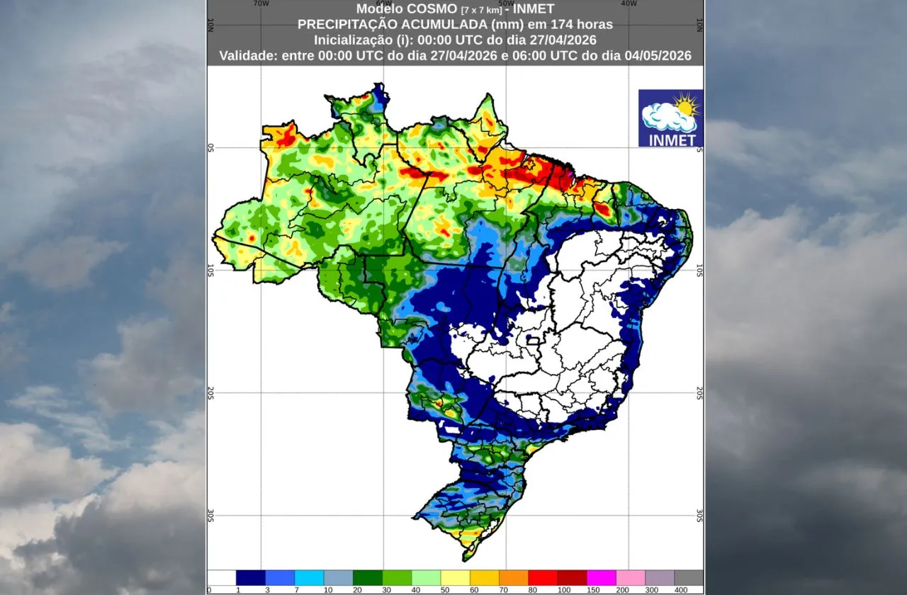 O Instituto Nacional de Meteorologia (Inmet) divulgou nesta segunda-feira, 27 de abril, o Informativo Meteorológico Semanal nº 17/2026, com a previsão do tempo para o período de 27 de abril a 4 de maio em todo o Brasil.