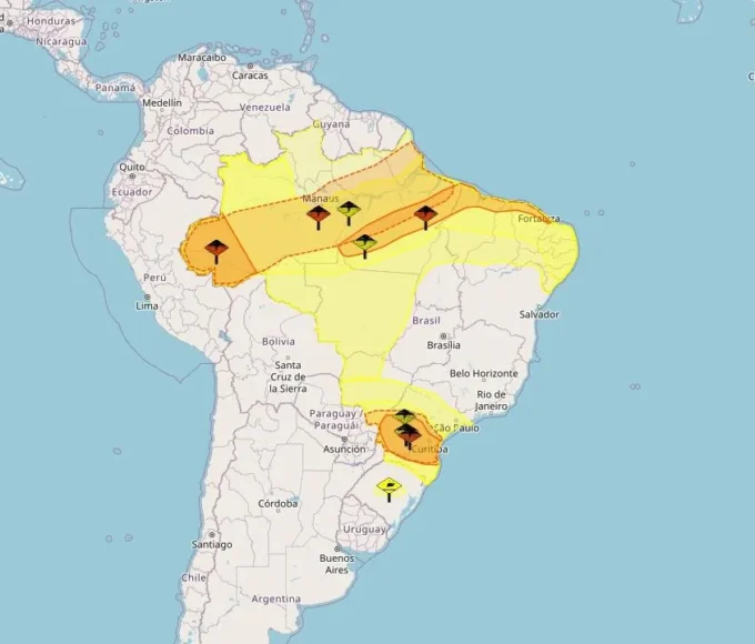 O Instituto Nacional de Meteorologia (Inmet) prevê muitas nuvens com pancadas de chuva e trovoadas isoladas, especialmente à noite. Contudo, outros modelos, como o ECMWF, sugerem uma chuva mais forte, de 14.3 mm, enquanto o GFS aponta para uma chuva leve de 5.2 mm.