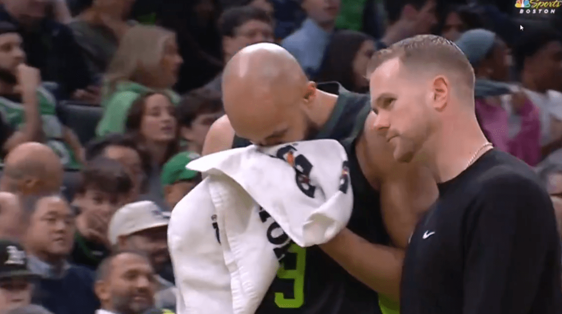 Derrick White perdeu novamente seus dentes durante a vitória dos Celtics sobre o Philadelphia 76ers na quinta-feira. White deixou a quadra aos 7:13 do segundo quarto após receber uma cotovelada acidental no rosto enquanto tentava bloquear uma bandeja de Kelly Oubre Jr.