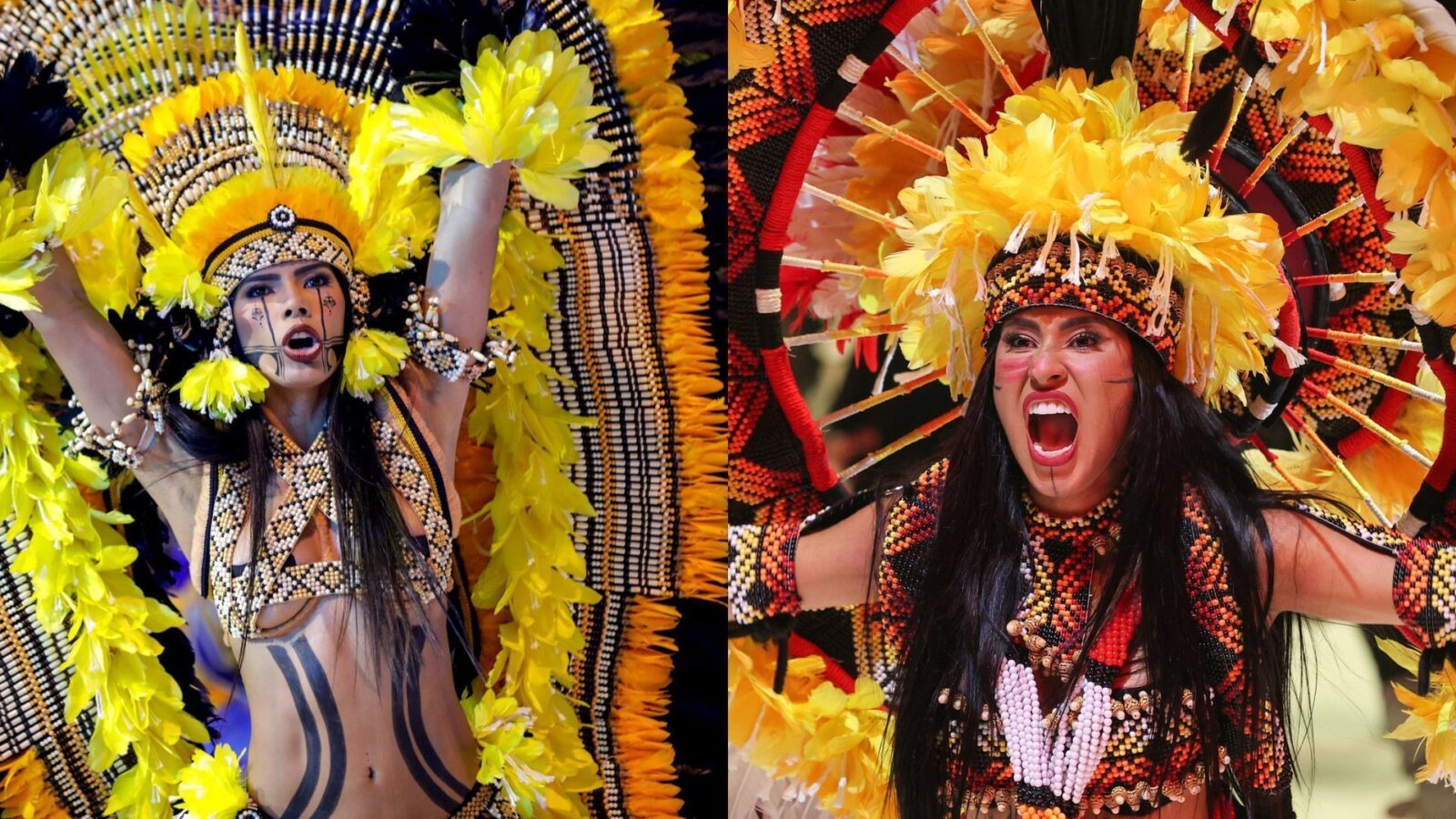 A cunhã-poranga Isabelle Nogueira surgiu em uma alegoria de lenda amazônica repleta de urubus. Sua indumentária, também em forma de urubu, brilhava durante sua evolução.