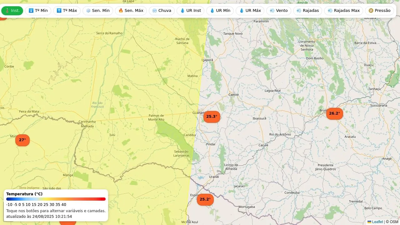 Veja as condições observadas nas estações meteorológicas do Inmet mais próximas e os alertas vigentes para Guanambi.