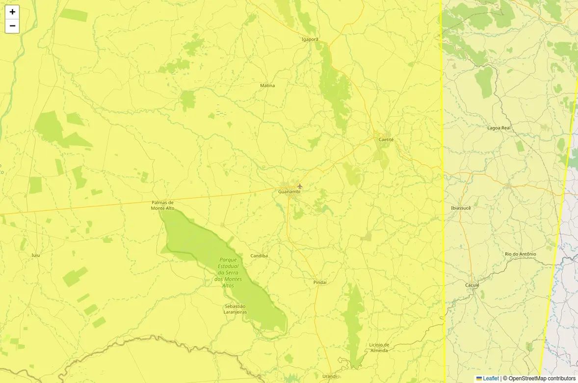 O município de Guanambi, na Bahia, está sob dois alertas meteorológicos de “Baixa Umidade” neste domingo, 3 de agosto. Ambos os alertas estão na cor Amarelo.