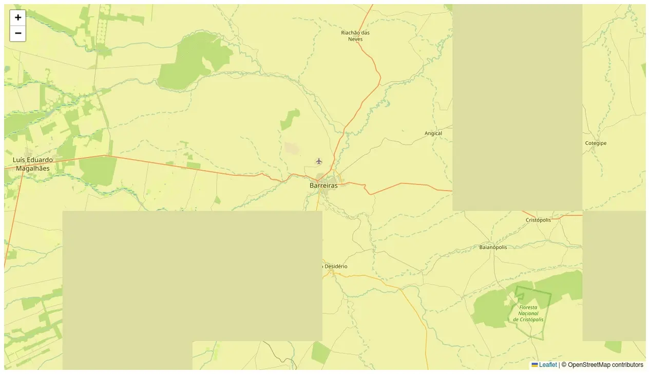 O município de Barreiras, na Bahia, está sob alerta meteorológico amarelo para baixa umidade.