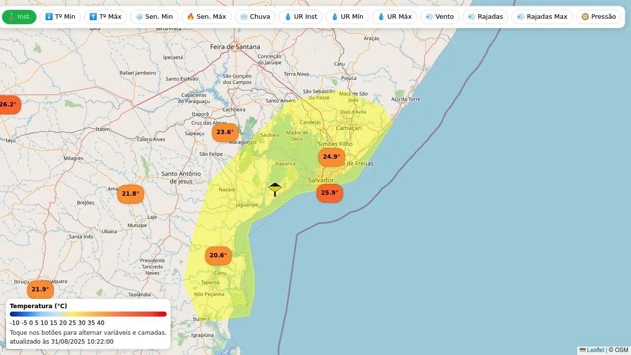 Veja as condições observadas nas estações meteorológicas do Inmet mais próximas e os alertas vigentes para Salvador.