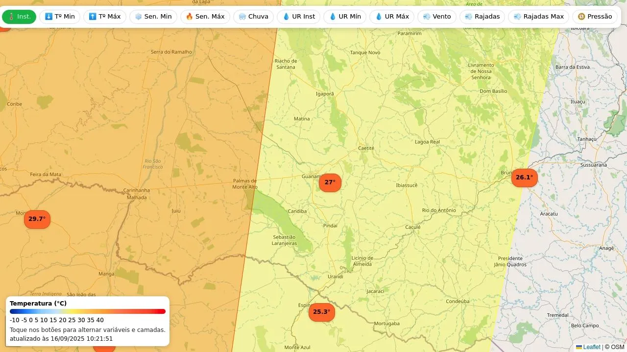 Veja as condições observadas nas estações meteorológicas do Inmet mais próximas e os alertas vigentes para Guanambi.