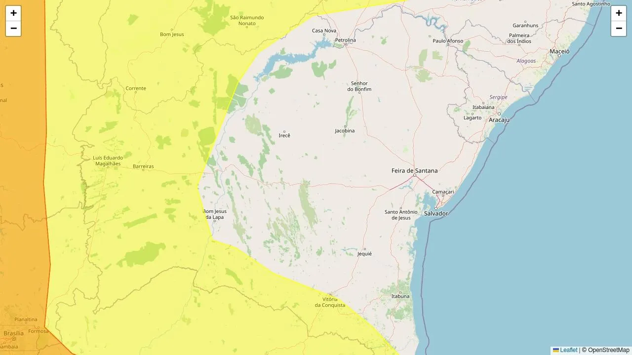 O Instituto Nacional de Meteorologia (Inmet) emitiu um alerta meteorológico na cor amarelo, abrangendo áreas da Bahia.