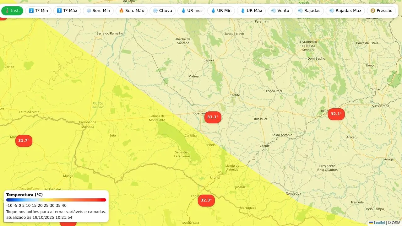 Veja as condições observadas nas estações meteorológicas do Inmet mais próximas e os alertas vigentes para Guanambi.