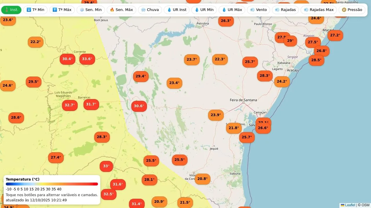 Veja as condições observadas nas estações meteorológicas do Inmet mais próximas e os alertas vigentes para .