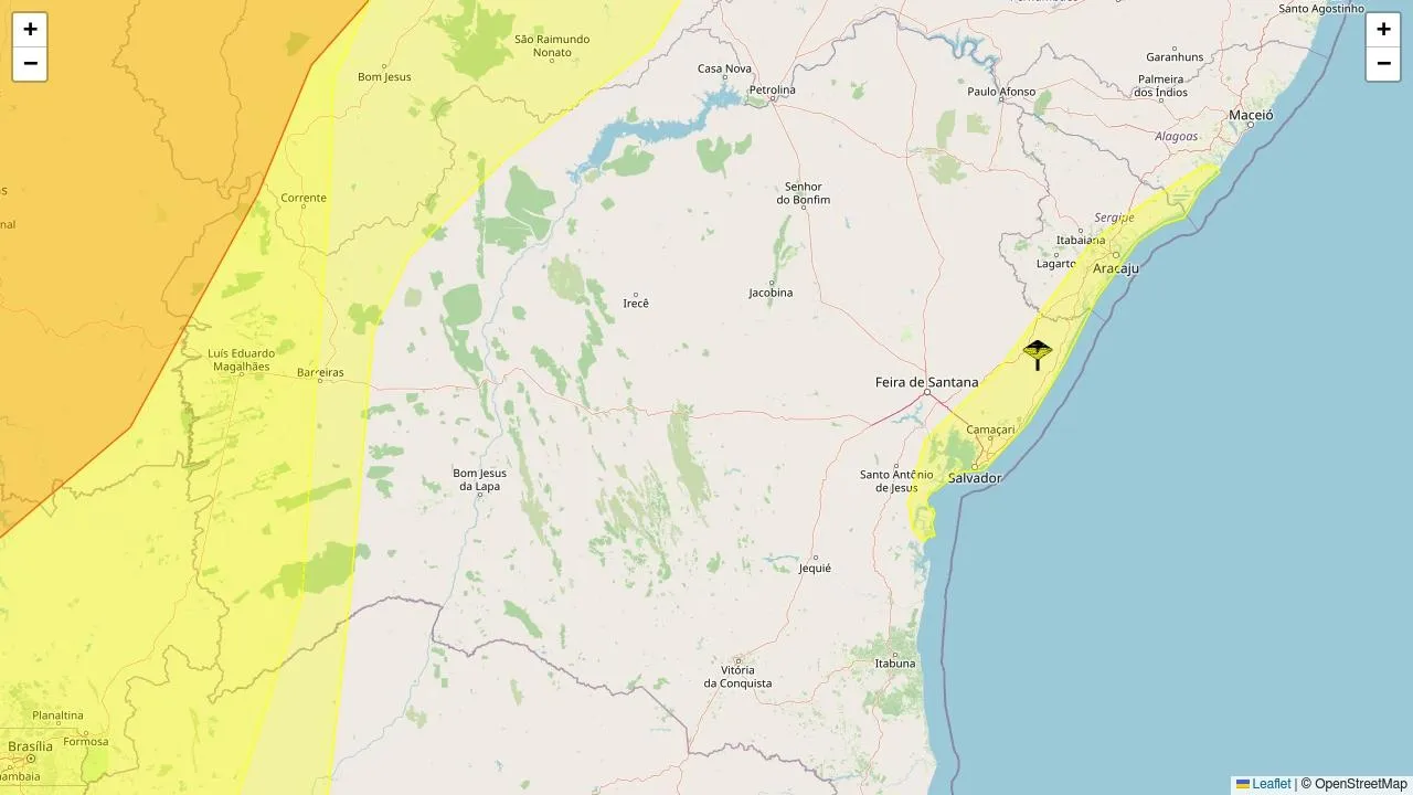 O Instituto Nacional de Meteorologia (Inmet) emitiu quatro alertas meteorológicos nas cores amarelo (3) e laranja, abrangendo áreas da Bahia.