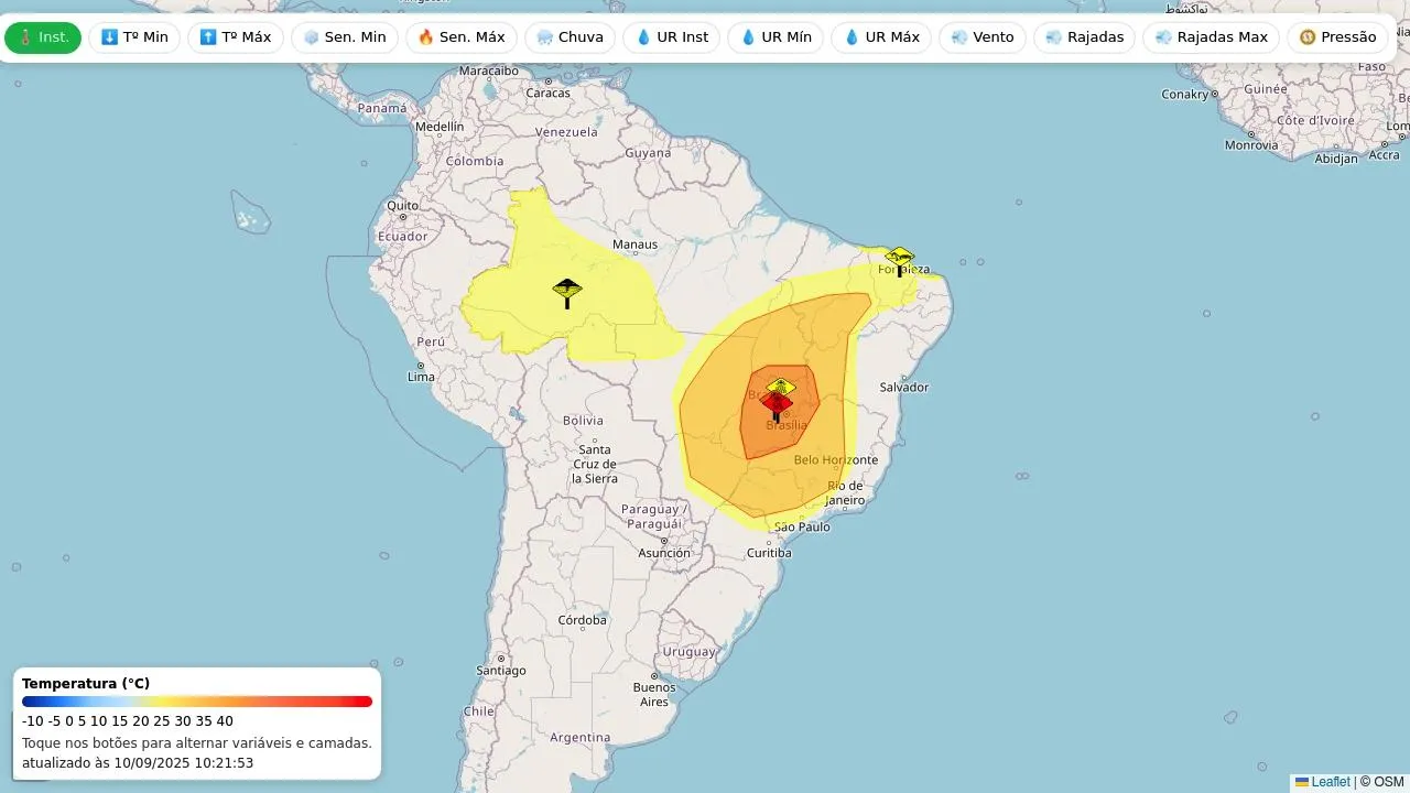 Mapa de estações meteorológicas e alertas Inmet