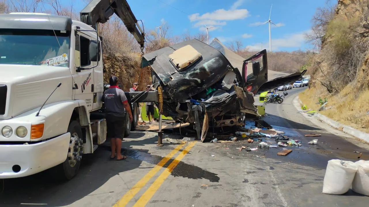 A carreta, com placas de São Paulo, transportava caixas de som e teria perdido os freios na descida da serra. O motorista pulou do veículo antes da colisão contra a parede de pedra à margem da rodovia.