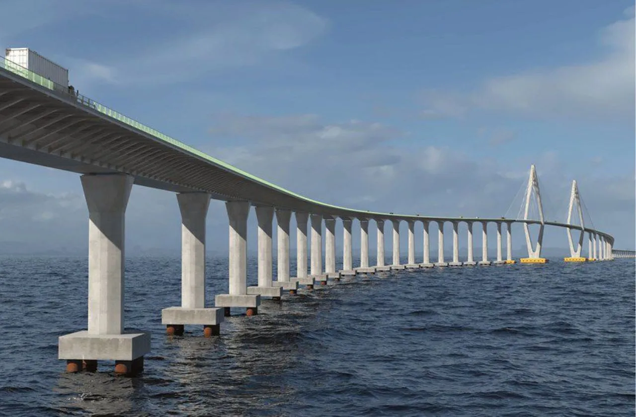 Com 12,4 quilômetros de extensão sobre o mar, a ponte vai conectar Salvador à Ilha de Itaparica. O projeto inclui acessos viários, túneis, viadutos e a implantação de uma nova via expressa na ilha, conforme informações do Governo da Bahia.
