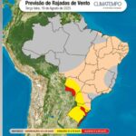 A prognóstico global aponta que a umidade relativa do ar deve variar entre 41% e 77%, e o Inmet entre 30% e 100%. Já as rajadas de vento podem atingir 38 km/h.