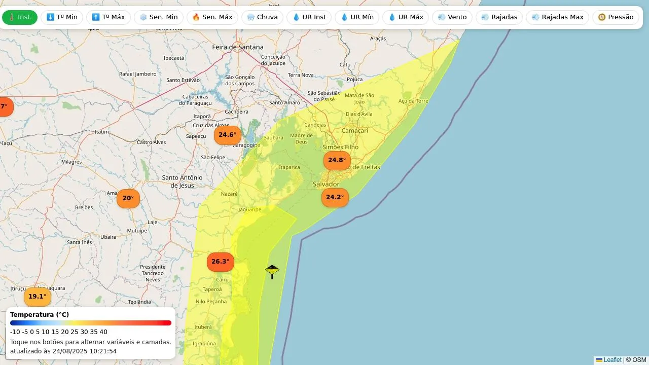 Veja as condições observadas nas estações meteorológicas do Inmet mais próximas e os alertas vigentes para Salvador.