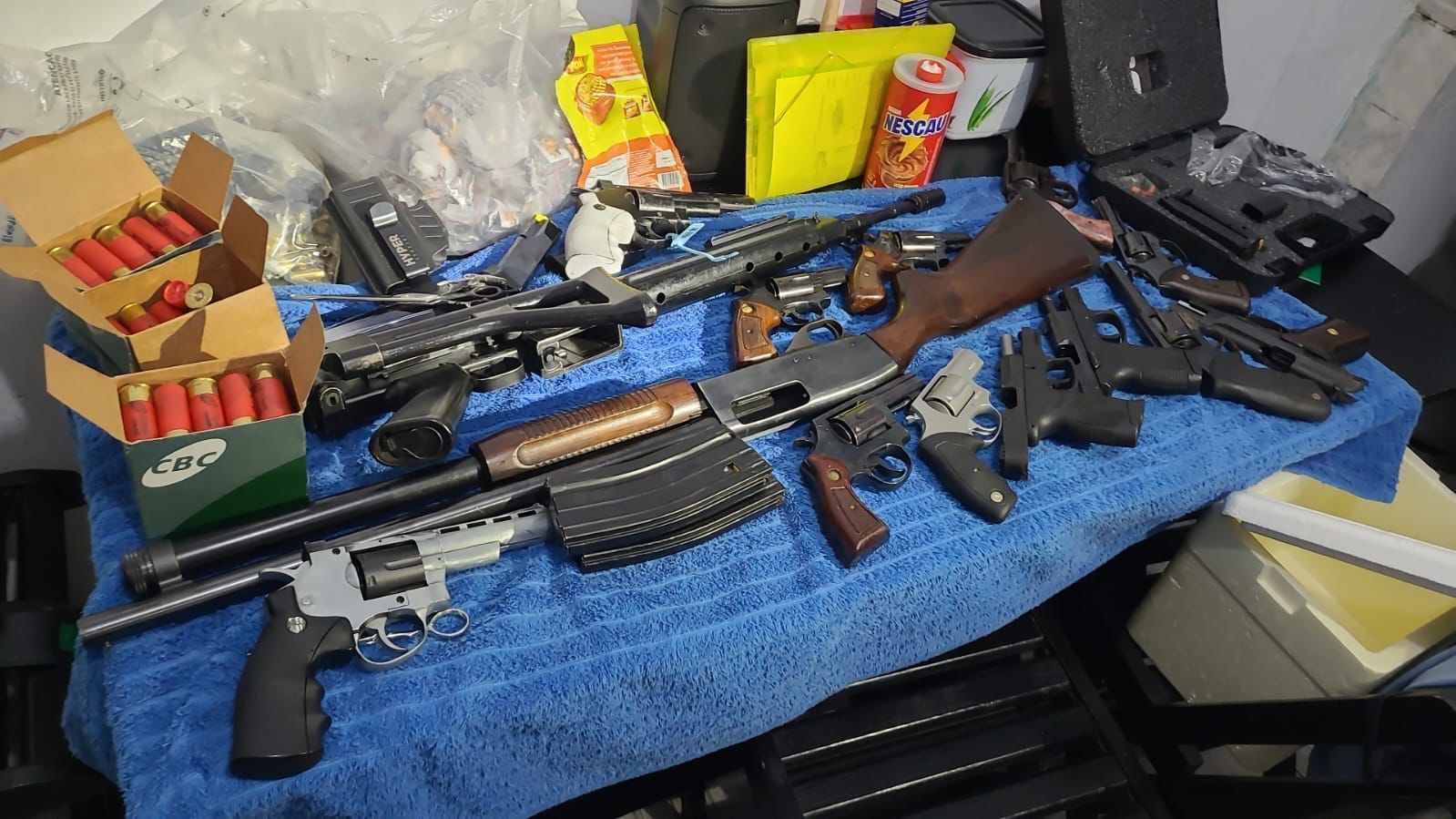 Os policiais encontraram também ferramentas e equipamentos levados de uma obra localizada ao lado da unidade policial. Além disso, a Polícia Científica foi acionada para realizar exames periciais nos locais onde o automóvel foi encontrado, bem como onde estavam as armas recuperadas.