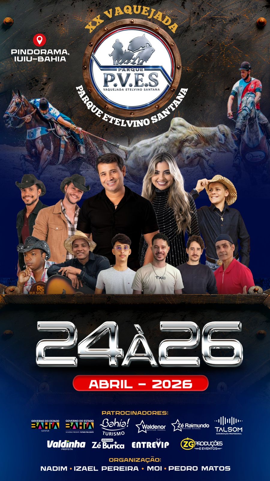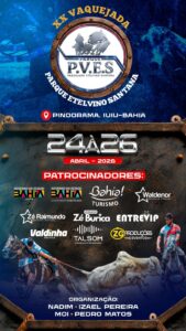 O distrito de Pindorama, no município de Iuiu, no sudoeste baiano, se prepara para receber uma das maiores e mais tradicionais festas da região: a XX Vaquejada de Pindorama, que acontecerá nos dias 24, 25 e 26 de abril de 2026, no Parque Etelvino Santana (P.V.E.S). O evento chega à sua vigésima edição consolidado como símbolo da cultura nordestina, esporte vaqueiro e importante motor da economia local.